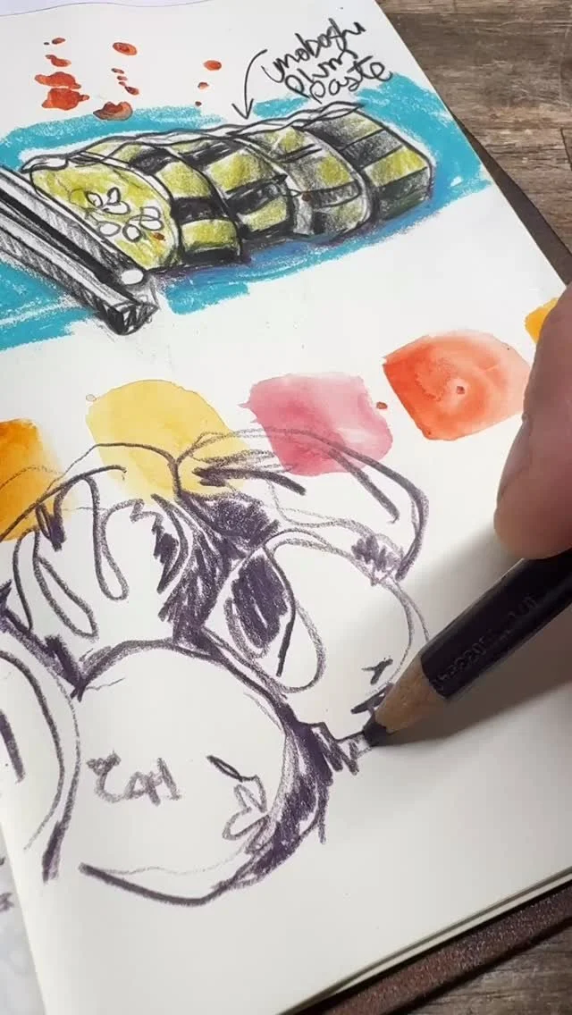 We travel journal, sketch, photograph and connect with those around us via this creativity.